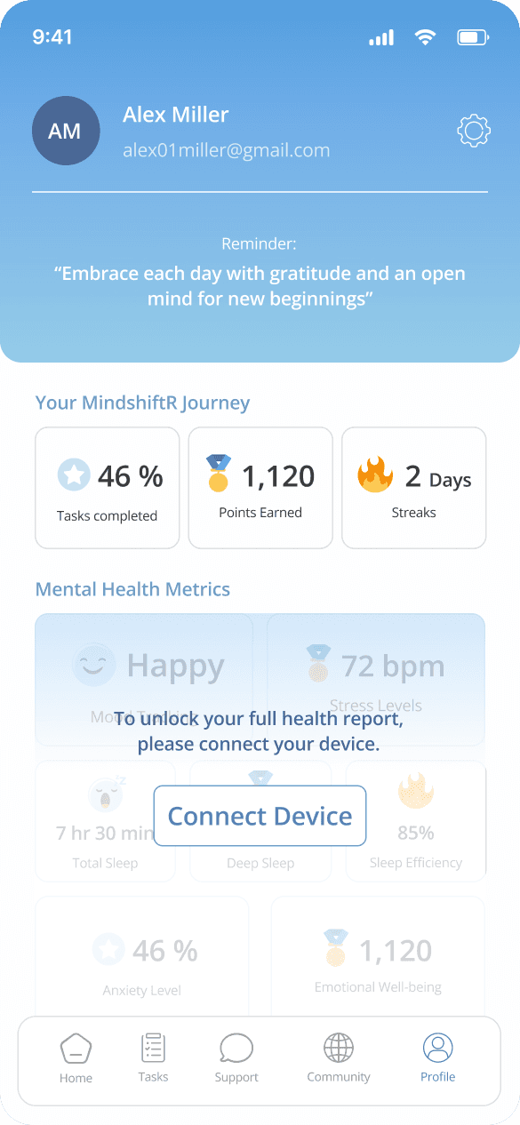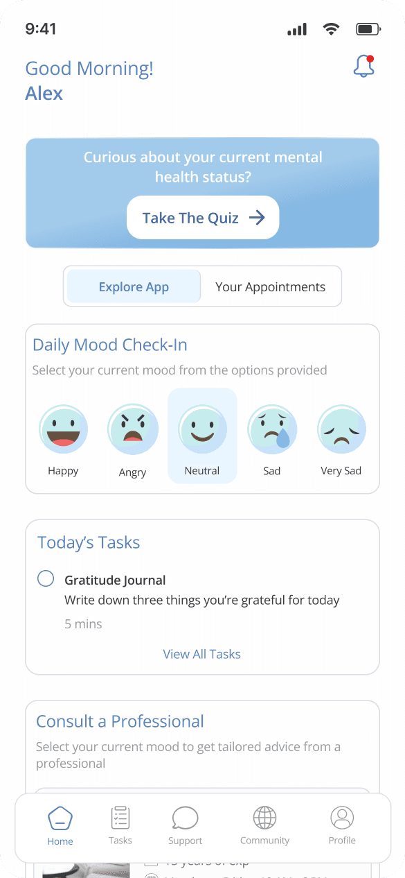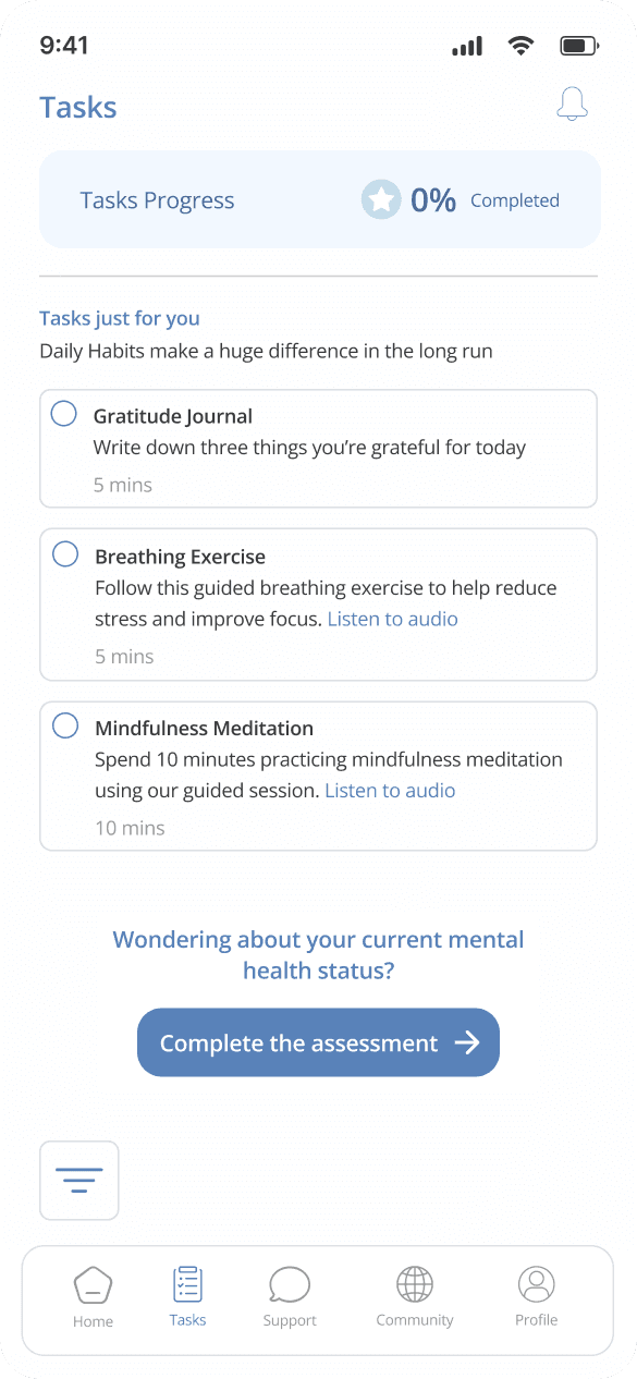 At the same time, students lacked a private, on-demand way to track their mood or dive into quick PBCT exercises. The result? Critical warning signs stayed hidden until problems turned into full-blown crises.